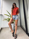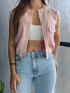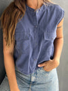Este chaleco de tela suave es una excelente opción para vestir en cualquier ocasión. Cuenta con elástico graduable en el ruedo para un ajuste perfecto y prácticos bolsillos. Sus broches añaden un toque elegante y versátil a tu estilo. Disponible en unicolor, es una prenda imprescindible en tu guardarropa.