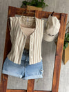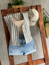 Chaleco tejido con diseño de rayas, suave y cómodo. Un básico con estilo para combinar en capas o llevar como pieza principal.