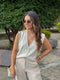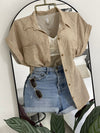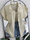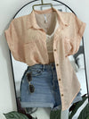 Camisa manga rodada presillas bolsillo