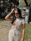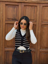 Chaleco de rayas, una prenda tejida que combina lo clásico con lo moderno para crear looks con mucho estilo. Su diseño versátil, cómodo y encantador lo hace perfecto para elevar cualquier outfit con un toque chic y diferente.