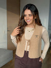 Suave, liviano y con un toque romántico: este chaleco tejido tira es ideal para sumar textura y estilo sin recargar tu look.