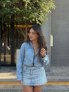 Dale un toque único a tu estilo con esta chaqueta de denim que combina lo clásico con detalles modernos y llamativos. Con una confección de alta calidad, presenta un cierre frontal con forma de estrellas, que aporta un aire original y audaz a cualquier outfit. Su diseño versátil y atemporal la convierte en la prenda ideal para looks casuales y con personalidad.